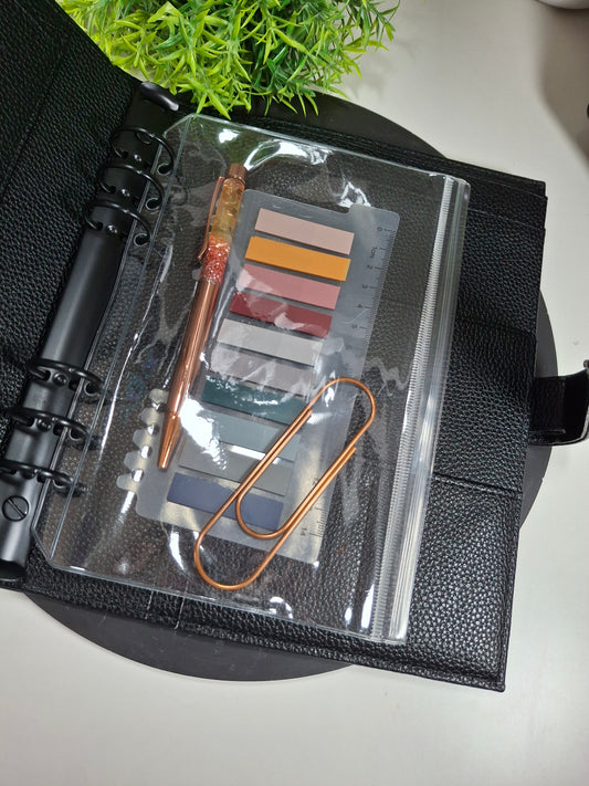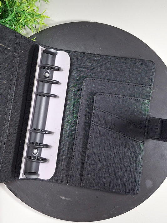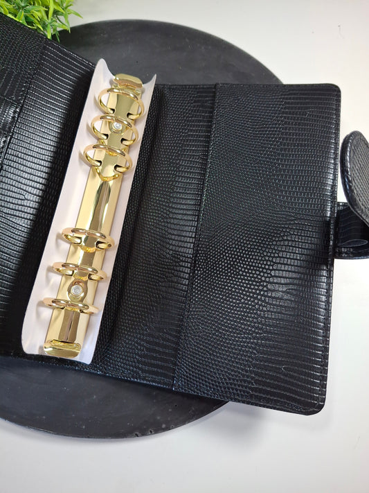 A6 wide Saffiano binder - gold rings - black on black rings - various colours