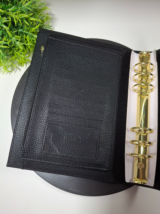 A6 wide Saffiano binder - gold rings - black on black rings - various colours