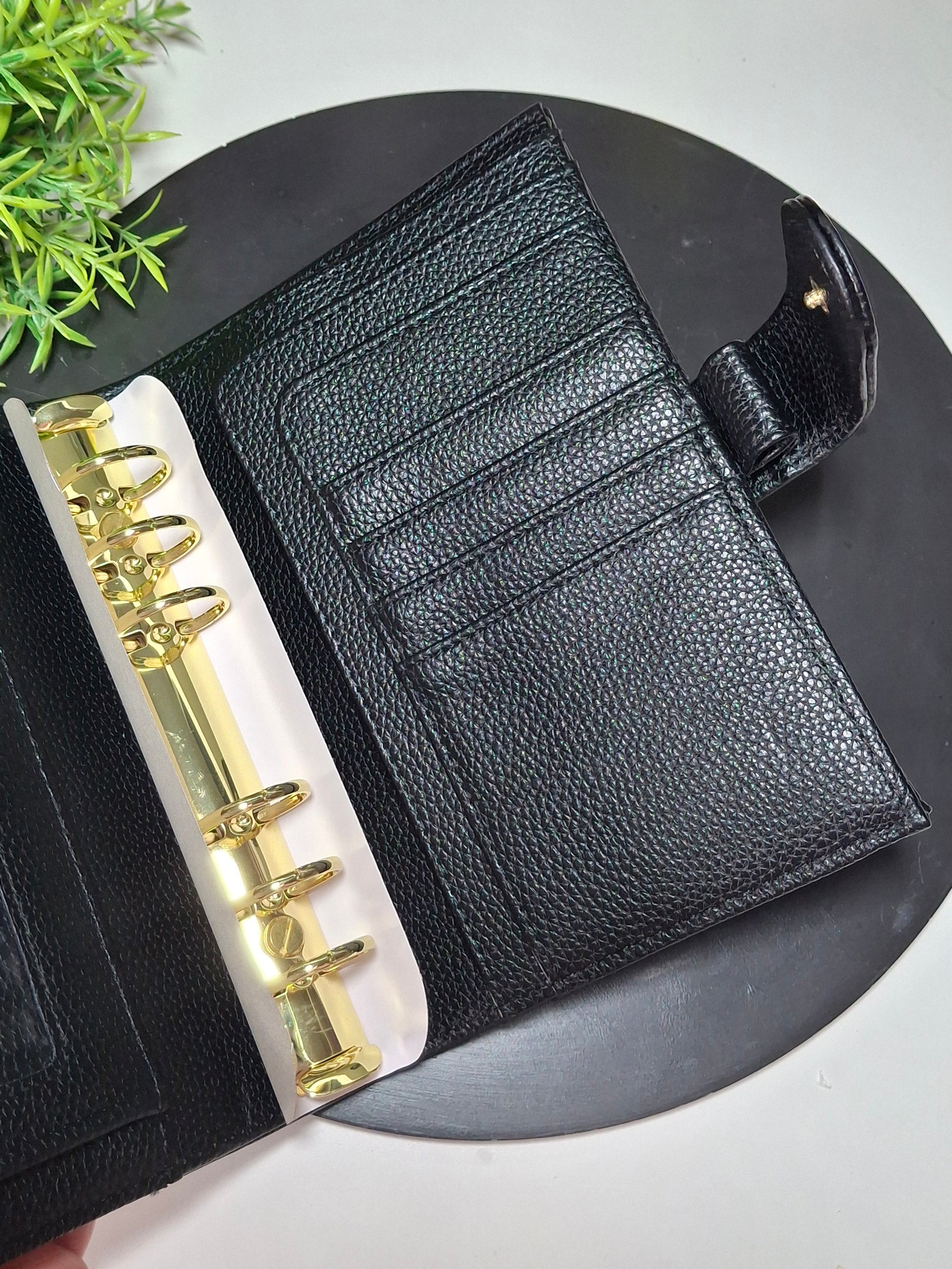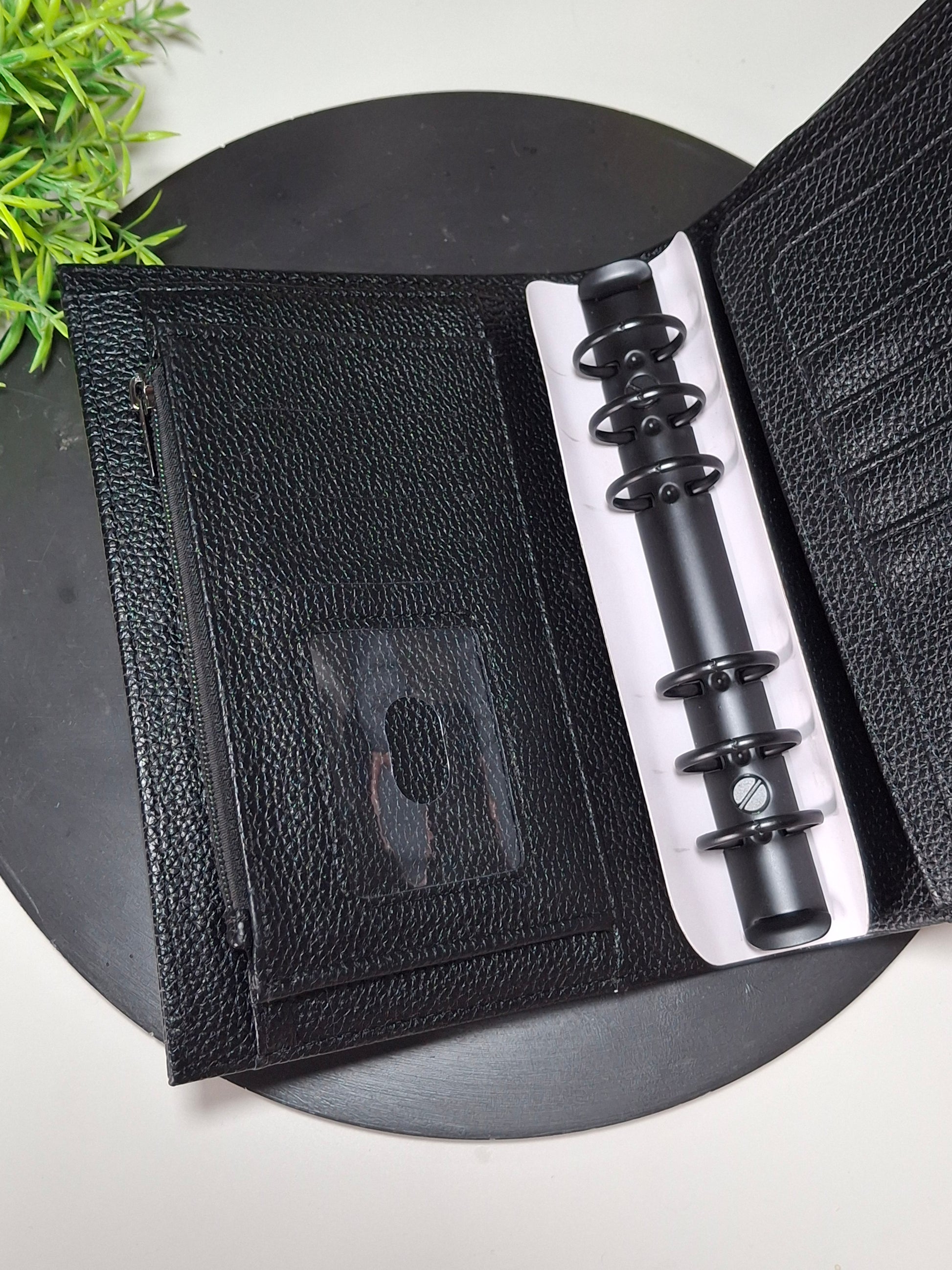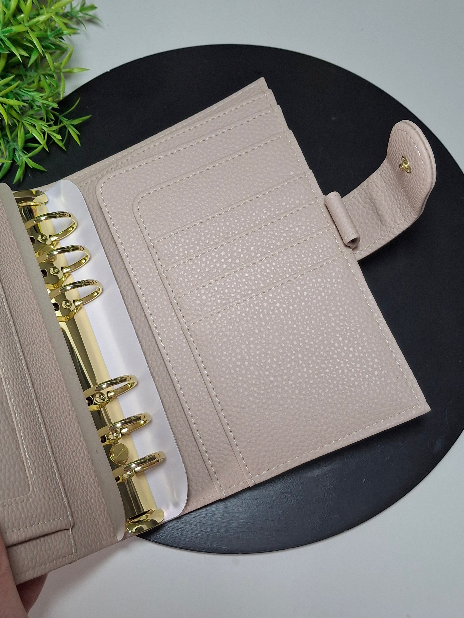 A6 wide pebble binder complete with full width back pocket, handy coin zipper and plenty of card slots. This binder has 2 poppers on the front for when your binder is a little fuller.