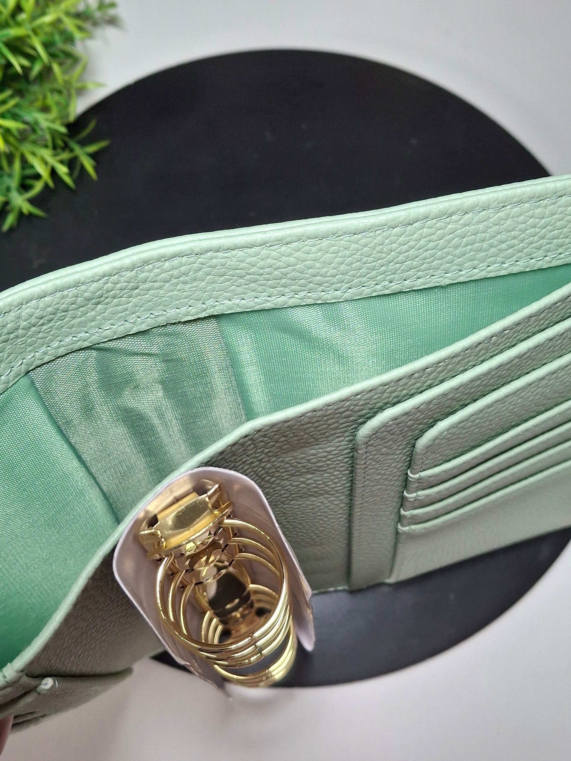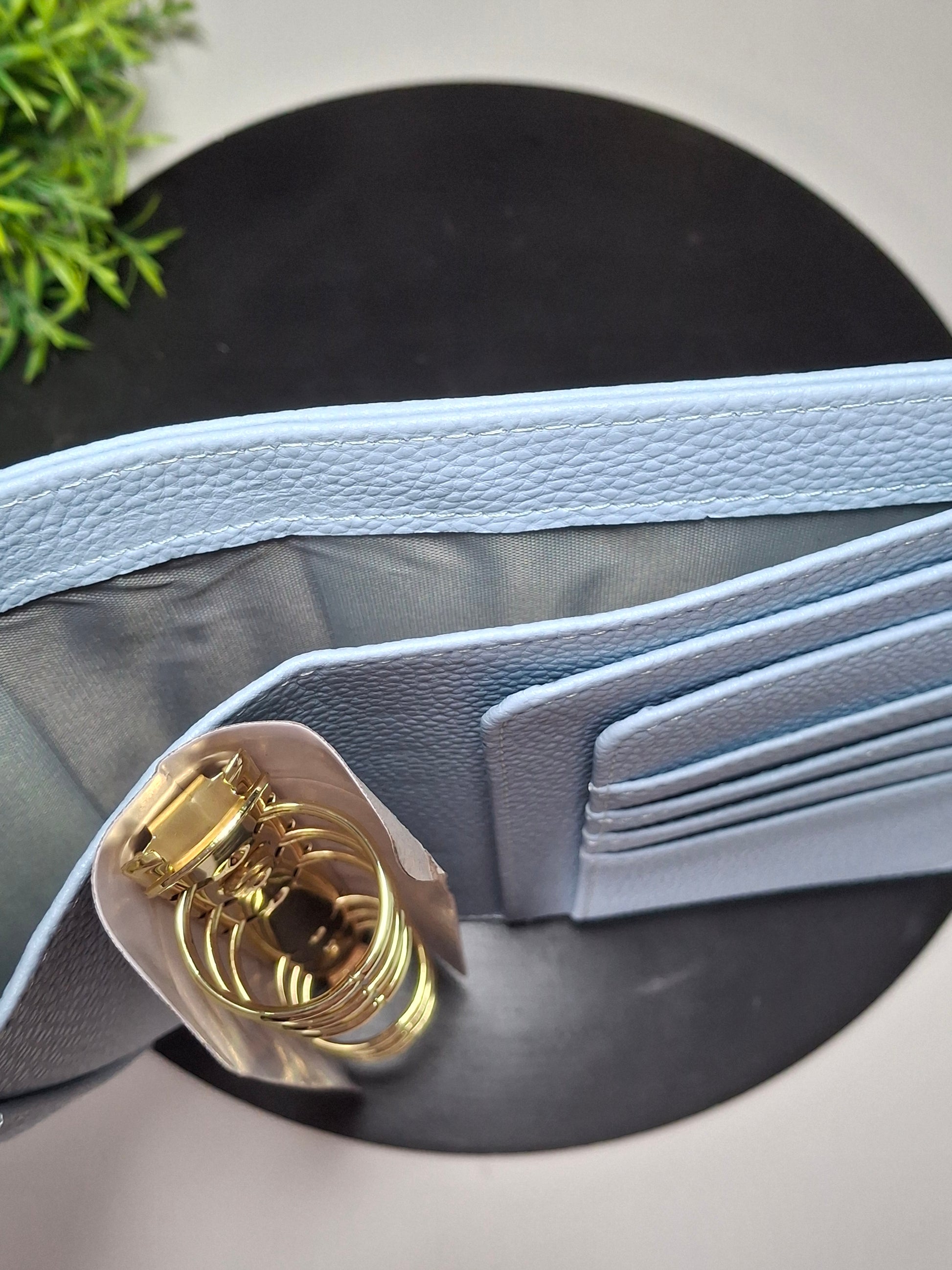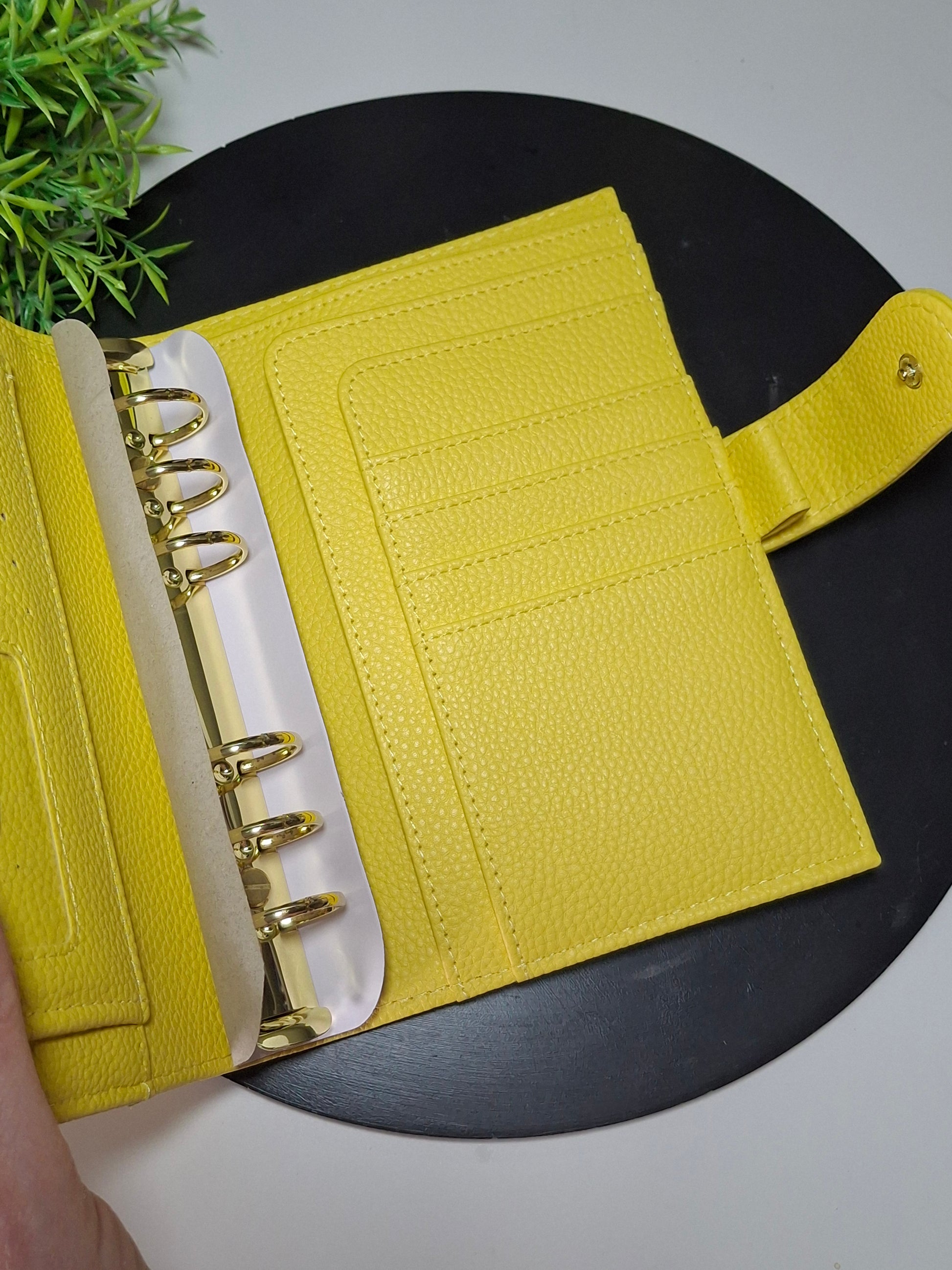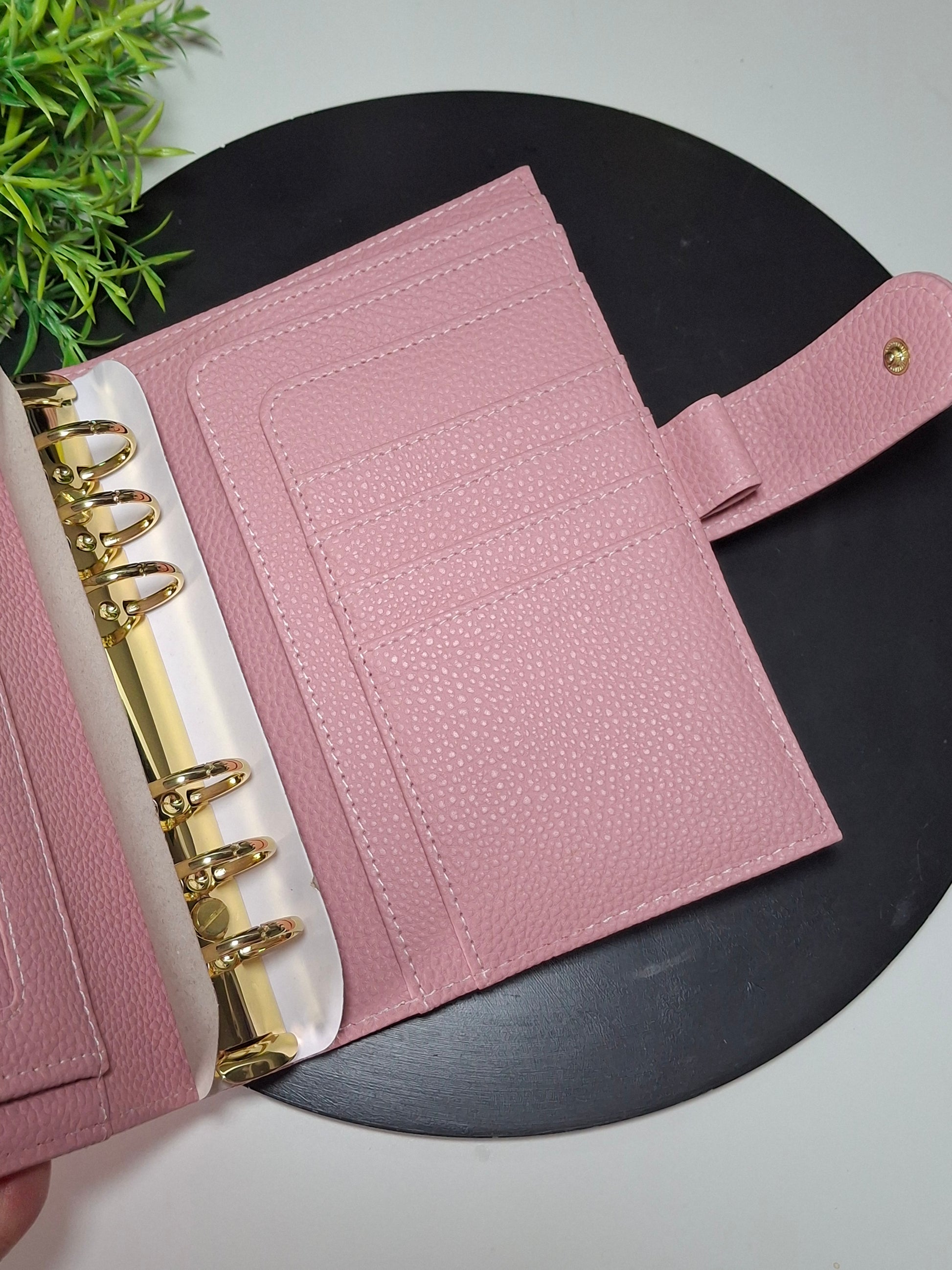 A6 wide pebble binder complete with full width back pocket, handy coin zipper and plenty of card slots. This binder has 2 poppers on the front for when your binder is a little fuller.