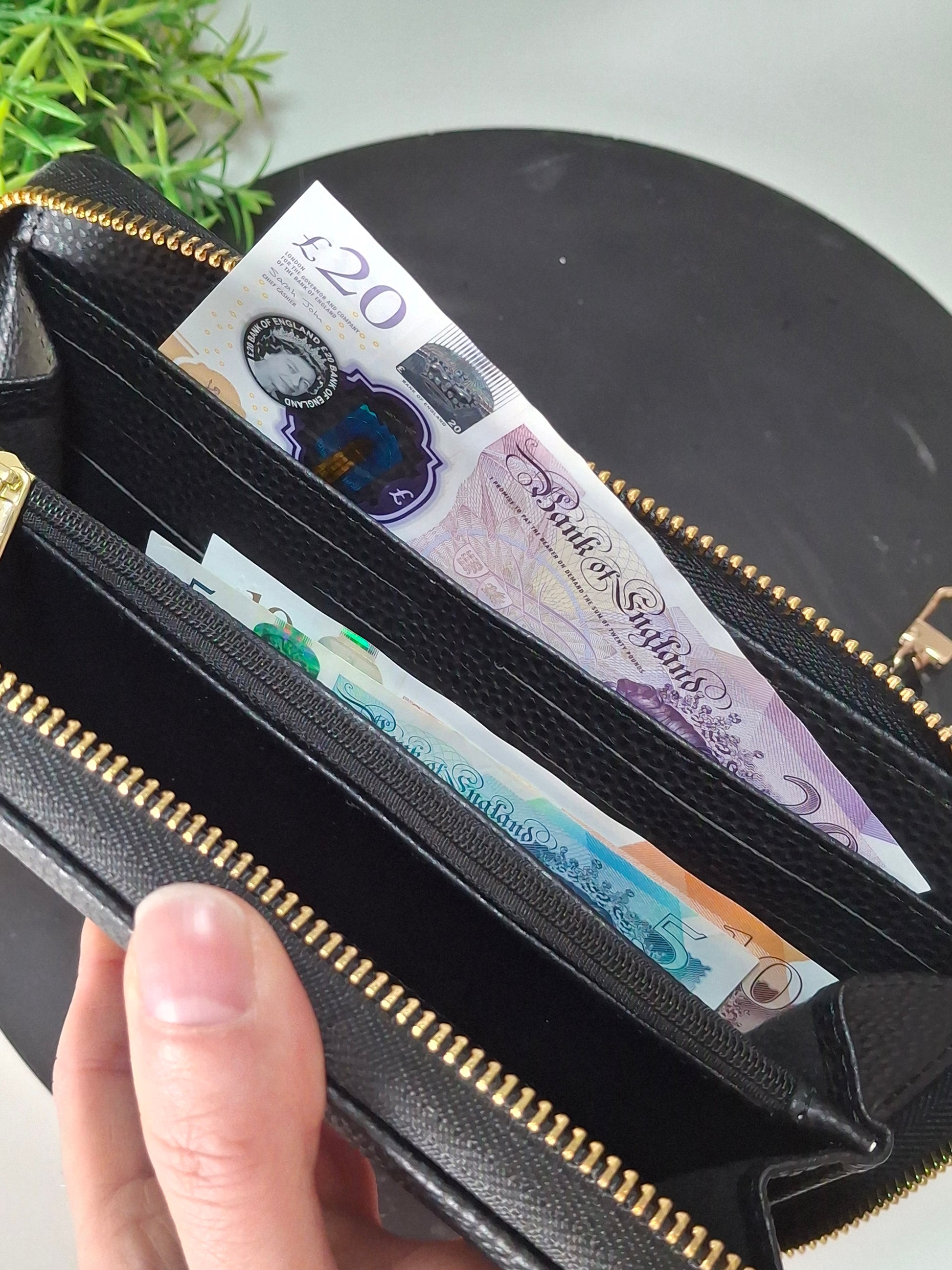 4 slots for holding different catagories of money - large enough to hold envelopes from A6 budget binders or tabbed dividers