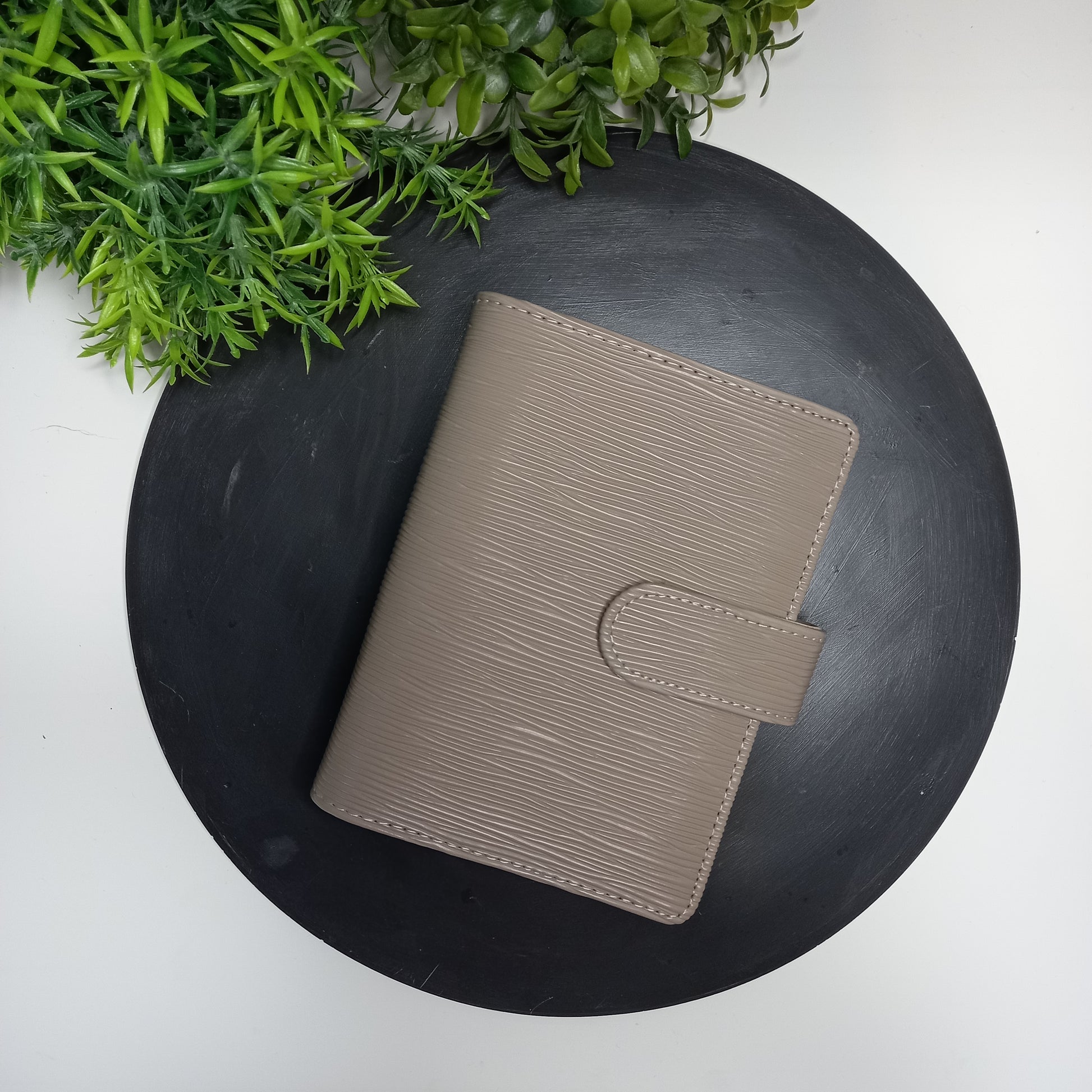 A7 ring binder perfect for on the go cash stuffing money envelopes. Lovely tactile ripple effect cover and inside with gold rings.
